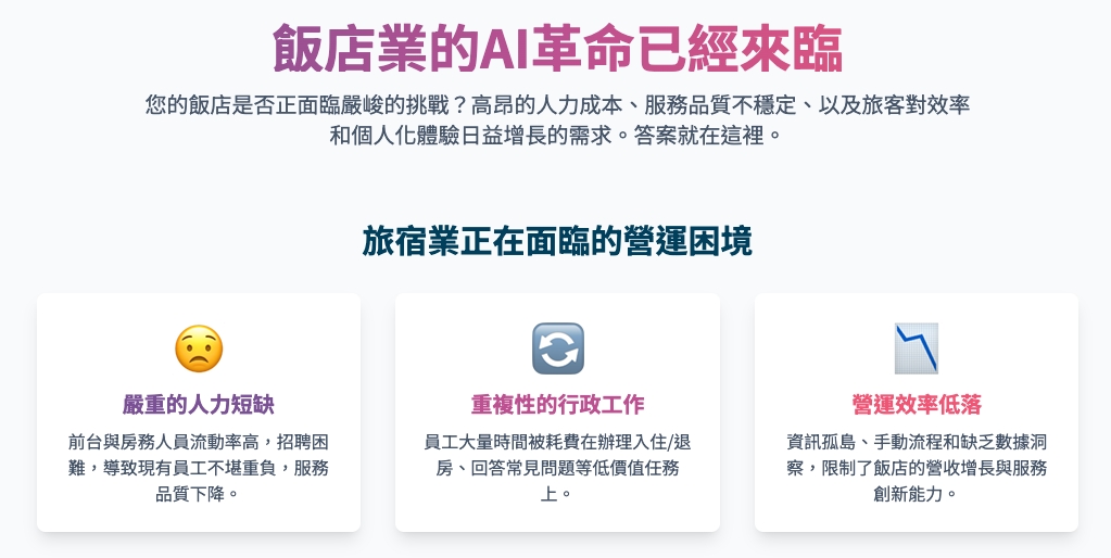 - 應對特殊情況的靈活性不足: 自動化系統難以處理非標準化的請求、突發緊急事件或需要人類判斷力與同理心的複雜賓客問題。