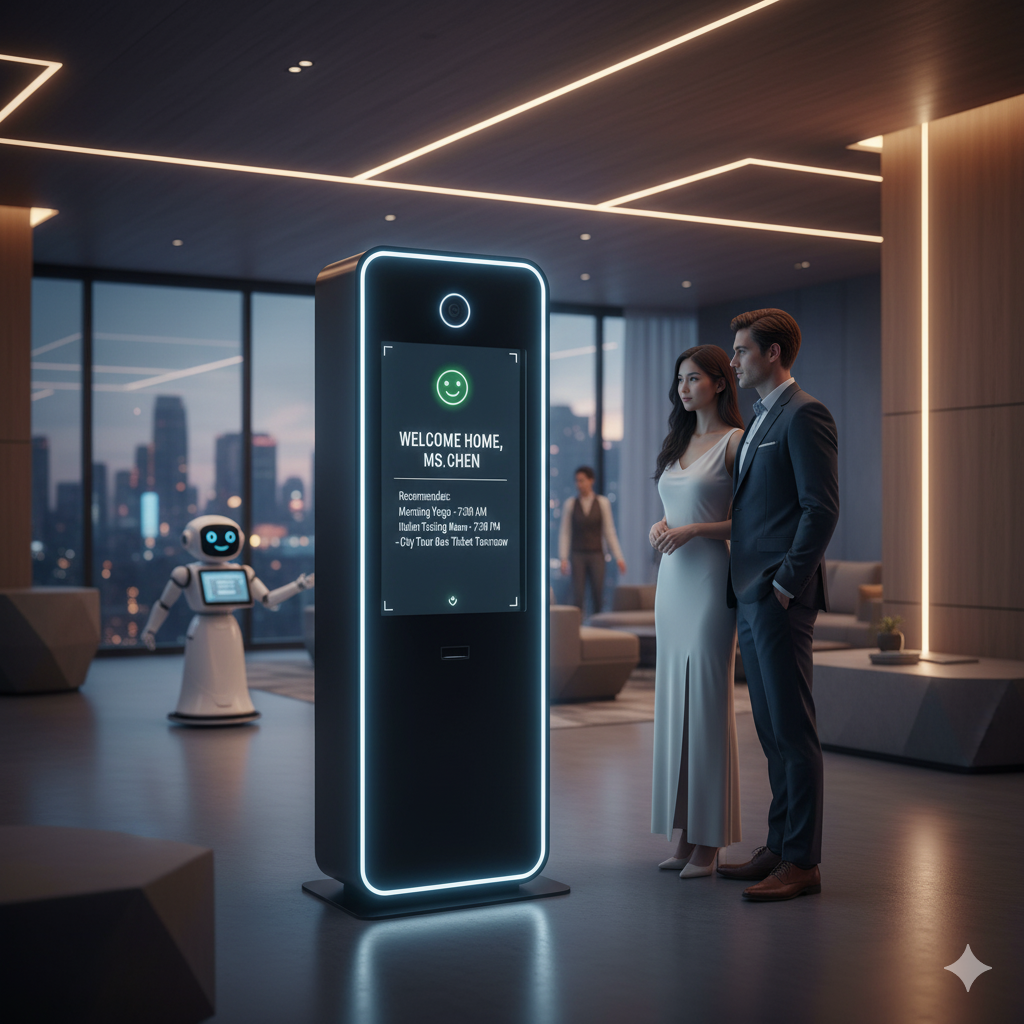 - 自助服務機台(Self-Service Kiosks): 賓客可透過觸控螢幕獨立完成入住與退房手續,包括掃描身分證件、處理付款等。